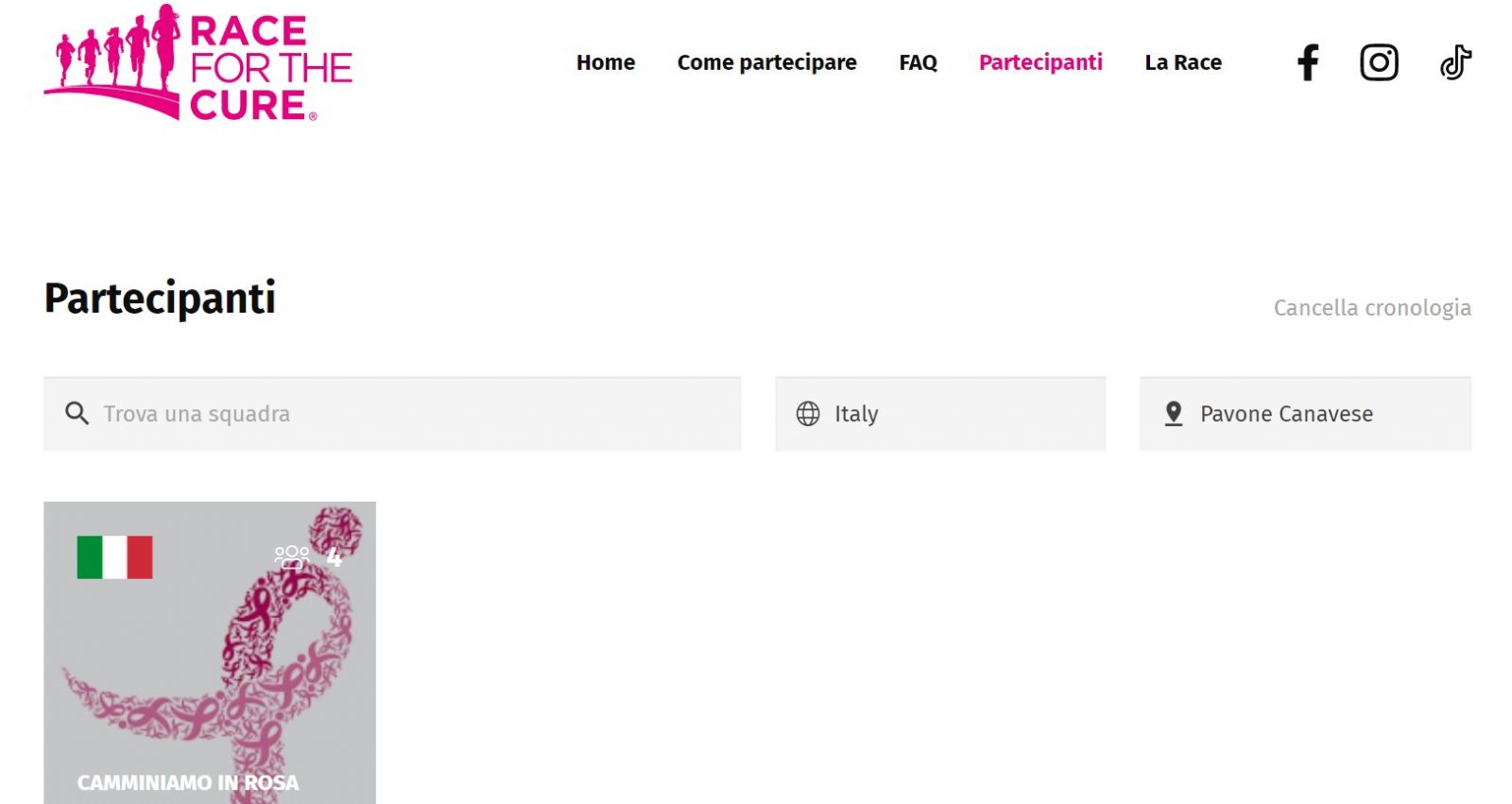 Cerca sul sito internet la squadra nella sezione ‘Partecipanti’ e ‘Unisciti alla squadra’ utilizzando il codice D3C6BAD6 facendo la tua donazione