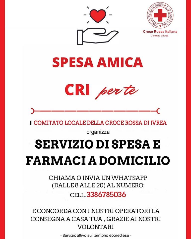 Tali viveri saranno a disposizione di chi ne ha bisogno, senza alcun costo, e saranno distribuiti a domicilio dal servizio Spesa Amica - CRIperTe della Croce Rossa di Ivrea.