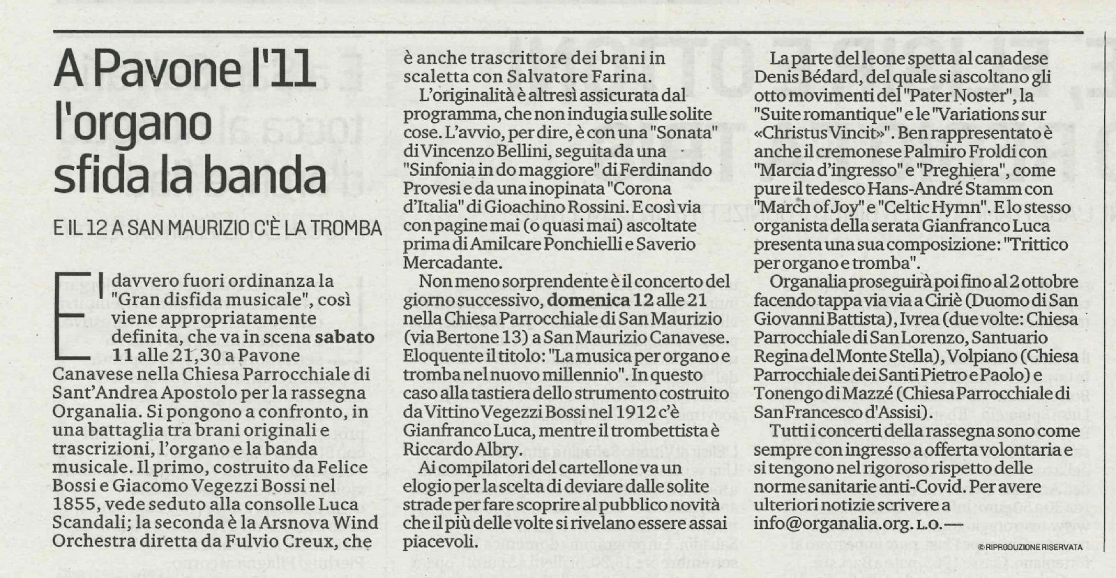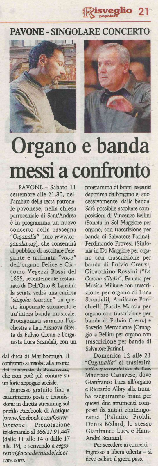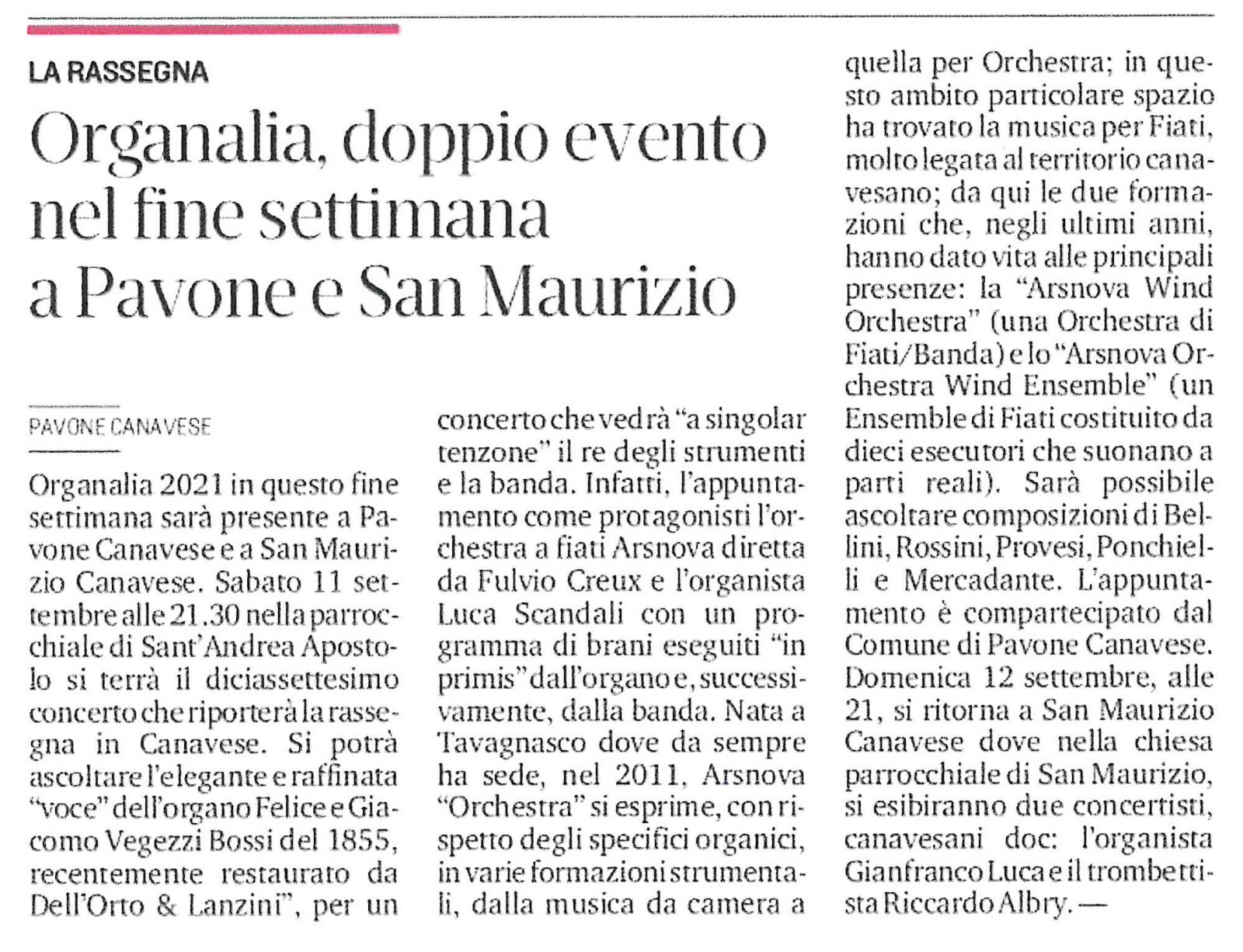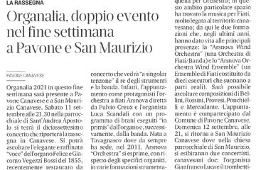 In questo week end Organalia 2021 sarà presente a Pavone Canavese.