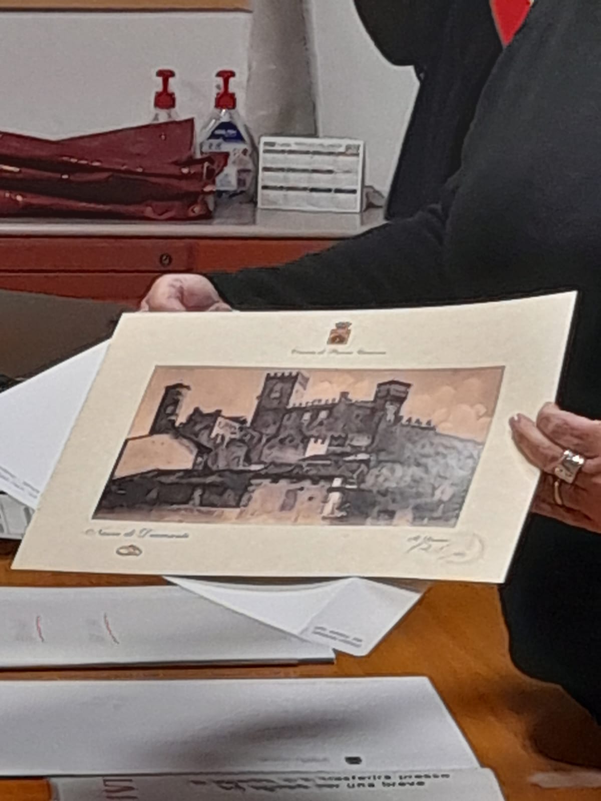 Per celebrare questo momento di gioia in segno di augurio e di ammirazione da parte dei concittadini verso chi ha vissuto insieme una storia lunga più di mezzo secolo sono state consegnate delle stampe ricordo.