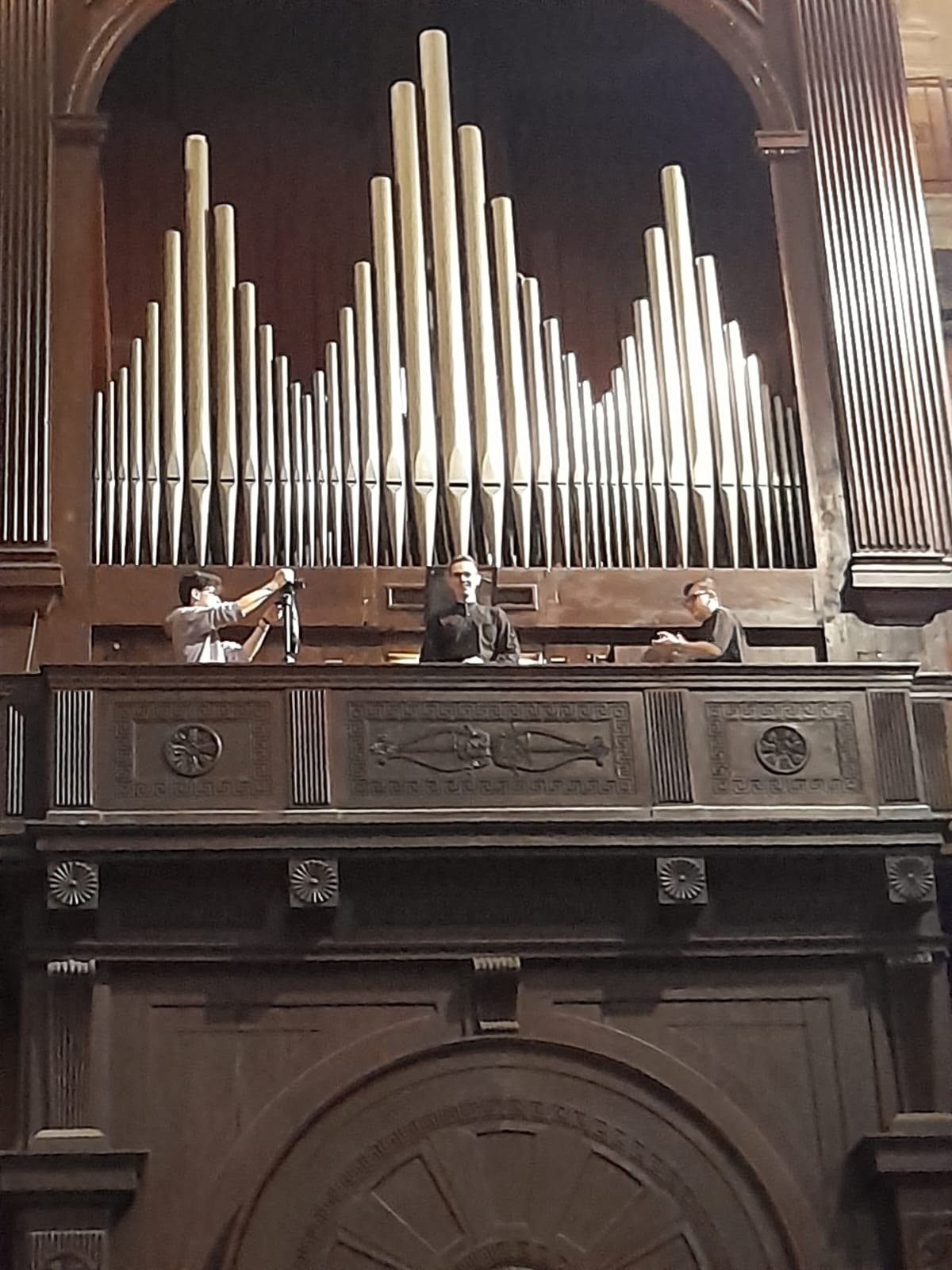 Un tesoro nascosto perché, per lo più, restano celati al pubblico sia l'organo che l'Organista, ma in questo concerto, grazie all'allestimento di una webcam, l'organizzazione dell'AODC ci ha consentito di apprezzare la complessità dei movimenti delle mani sulla tastiera mentre i piedi si spostano sulla pedaliera.