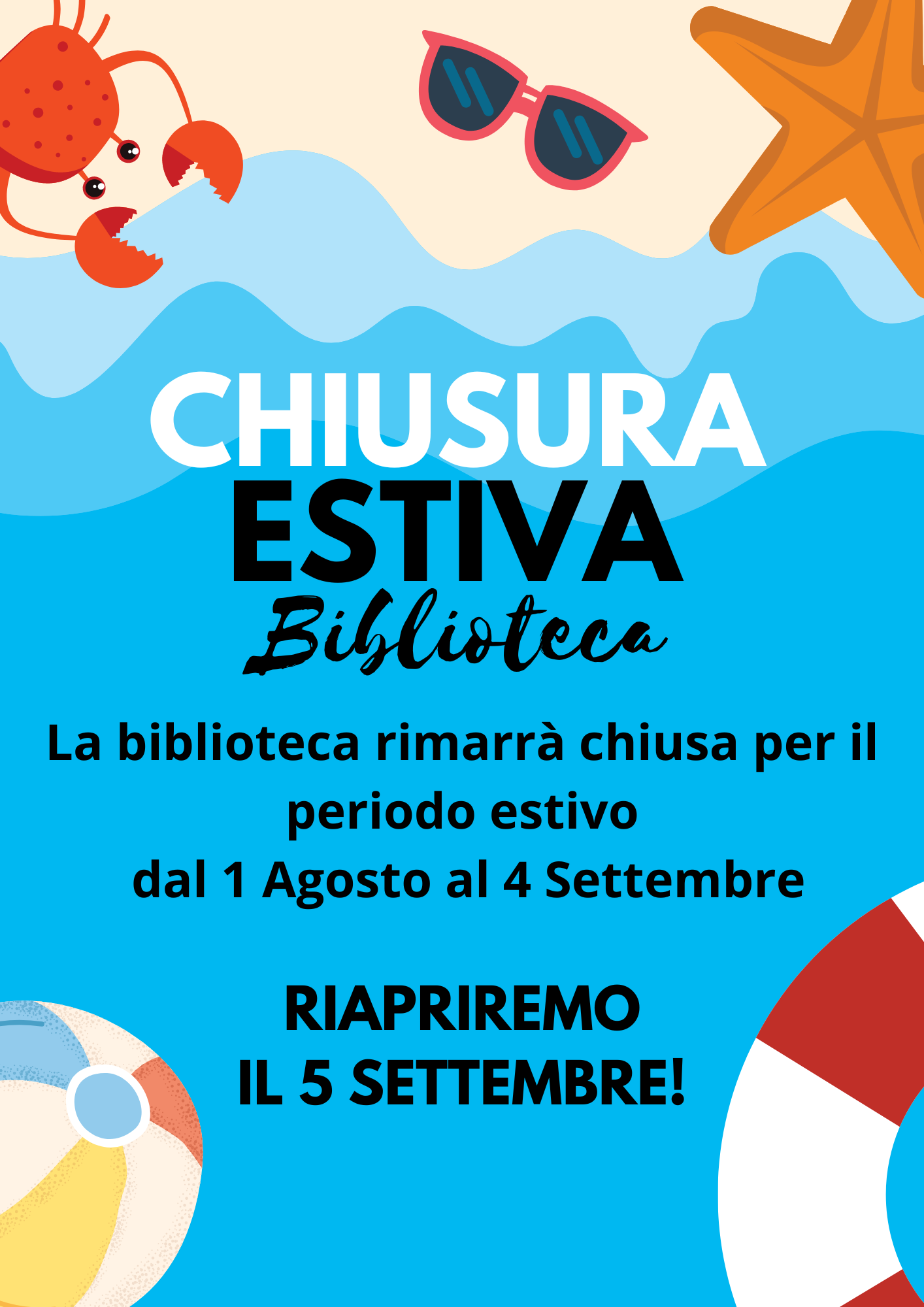 La Biblioteca Comunale sarà chiusa dal 1 Agosto al 4 Settembre.