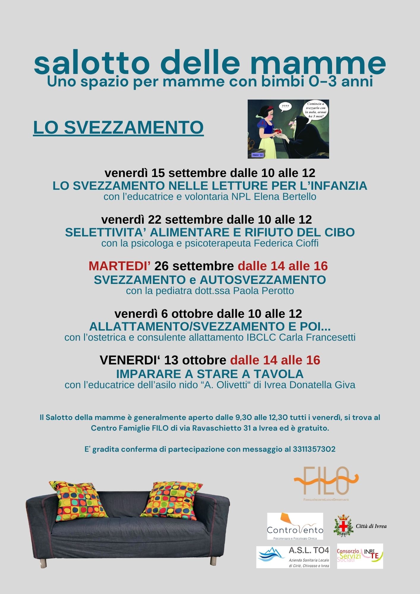 Vi proponiamo quindi, nei mesi di settembre e ottobre, di approfondire il confronto su un tema richiesto da molte famiglie: LO SVEZZAMENTO