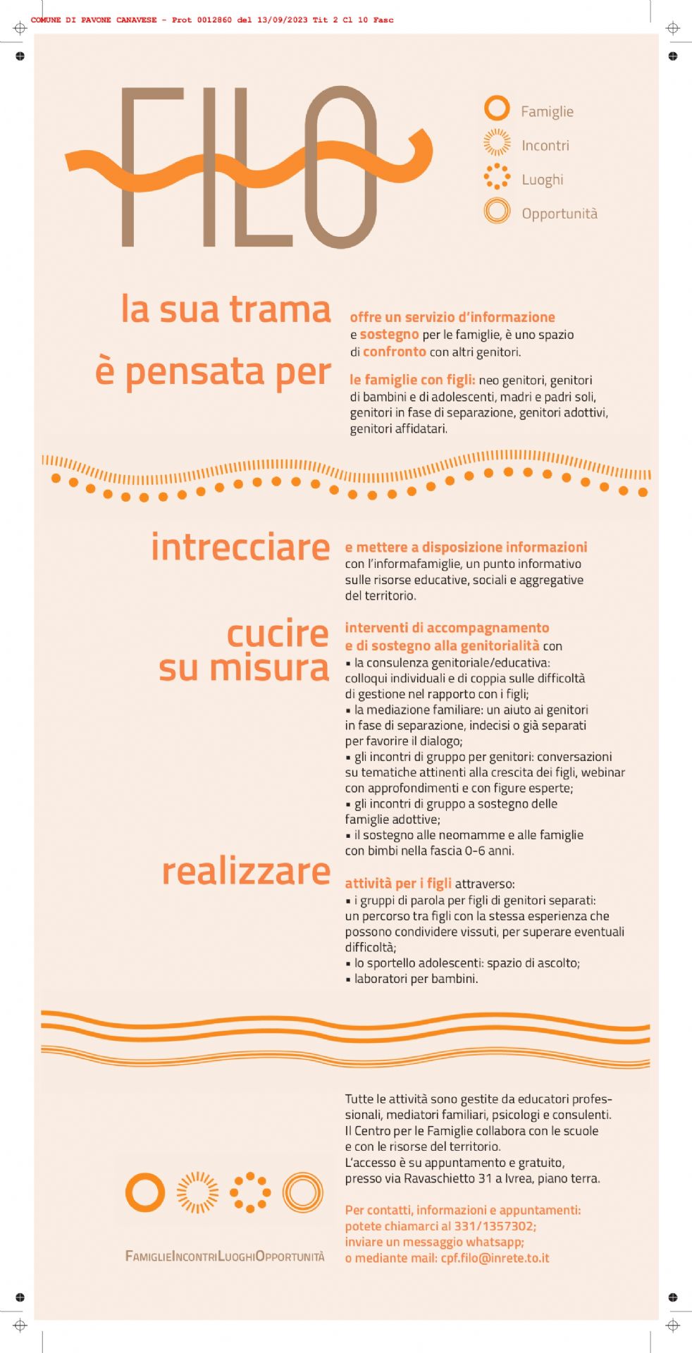 Il centro per le famiglie F.I.L.O. è un servizio pubblico, tutte le attività gratuite.
