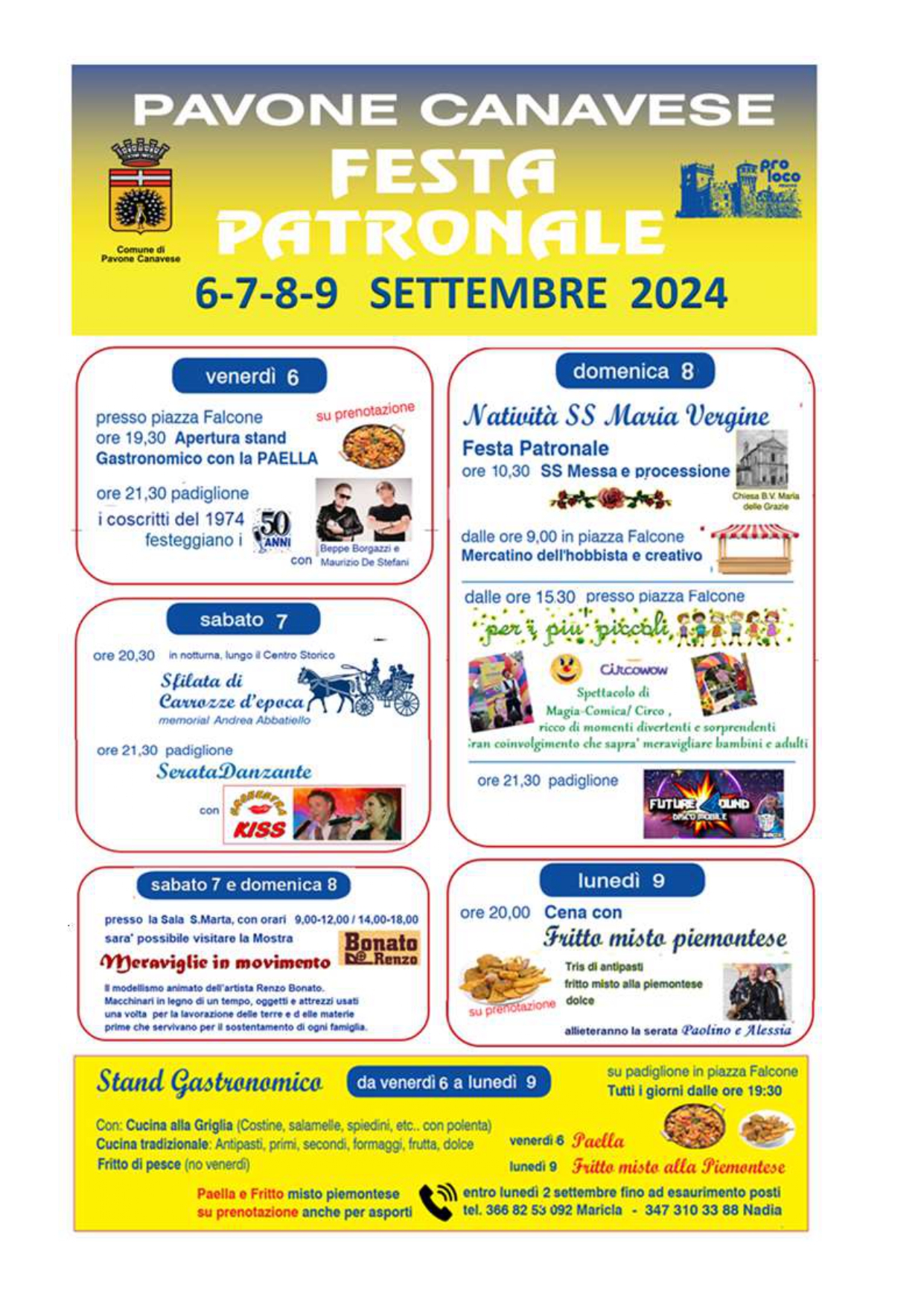 Grazie alla nostra Pro Loco che, con la sapiente e coordinata organizzazione, ha saputo dar vita a una apprezzata Festa Patronale 2024. I gustosissimi e appetitosi piatti, anche della tradizione, sono stati una vera delizia. I tanti giovani visti all'opera fanno ben sperare per il nostro futuro.