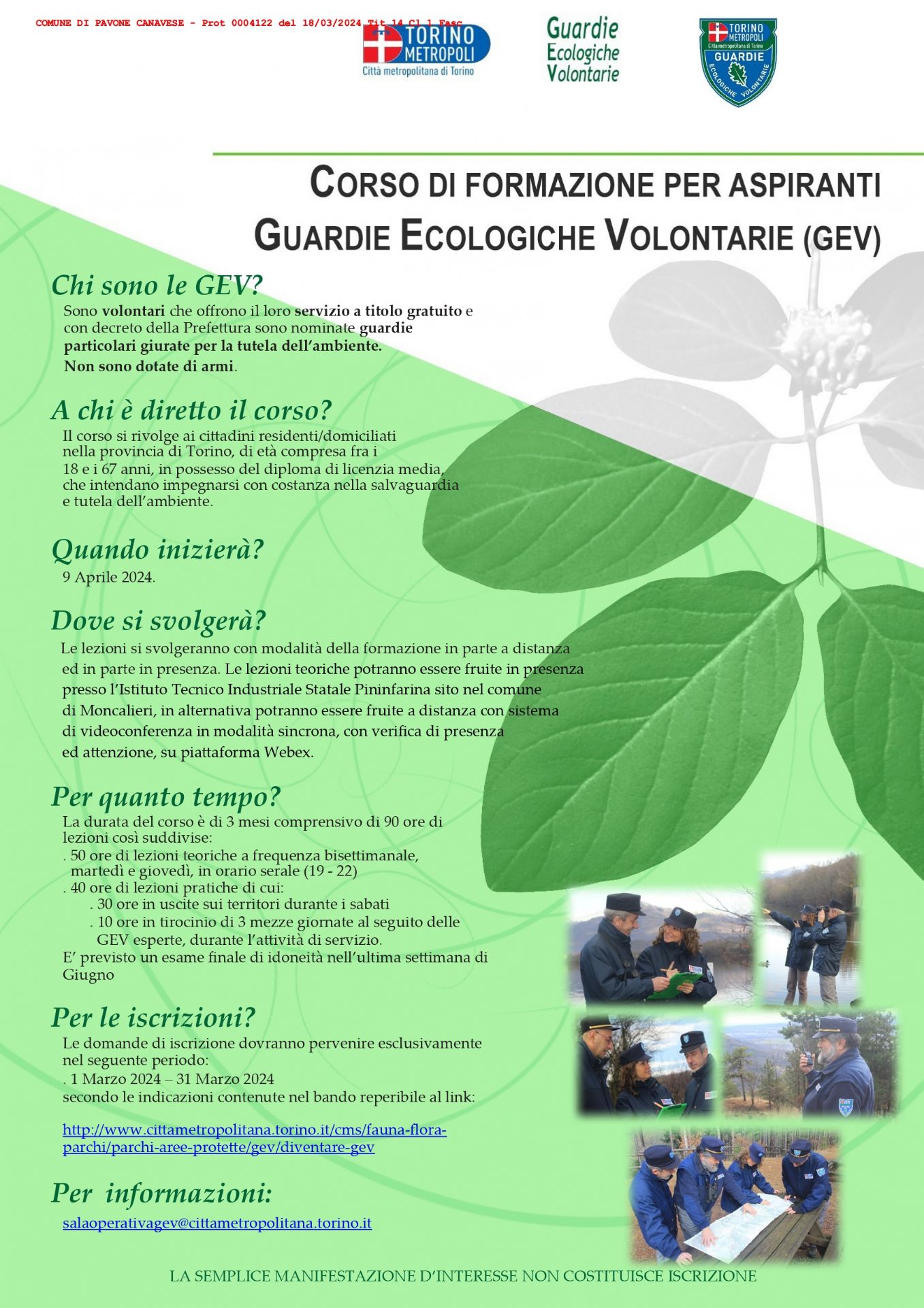 La Città Metropolitana di Torino organizza un Corso di Formazione per le Guardie Ecologiche Volontarie.