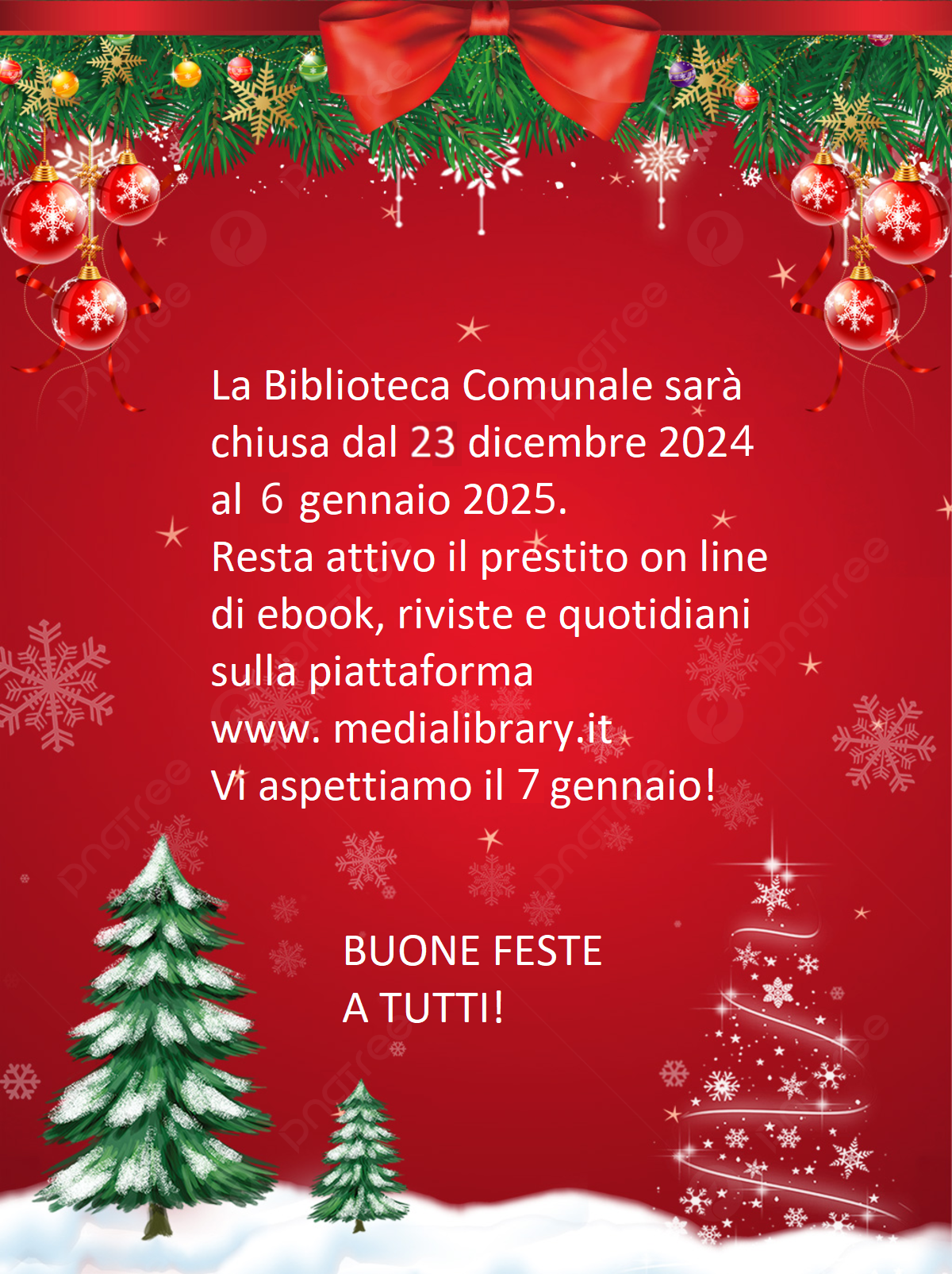 Si avvisa che da Lunedì 23 Dicembre la Biblioteca Comunale sarà chiusa.