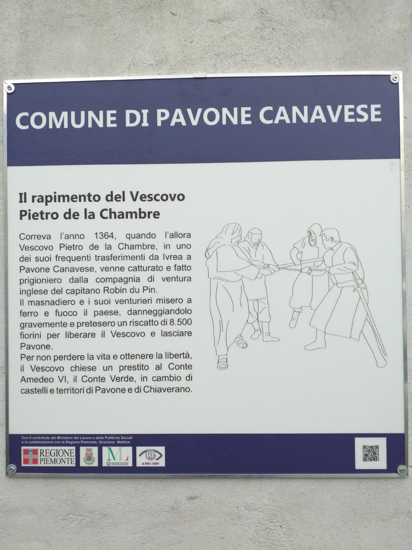 - Pannello informativo "Rapimento del Vescovo Pietro della Chambre", situato in Piazza Martiri, disponibile per vedenti ed ipovedenti;