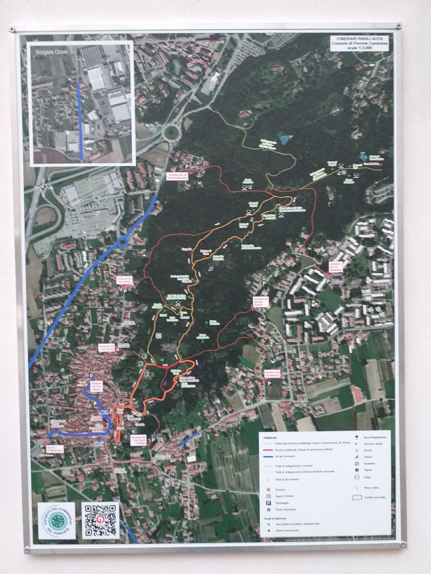 - Cartelli sui percorsi del territorio, posizionati sulla parete esterna del Centro Culturale Alfredo d'Andrade. Rappresentano: