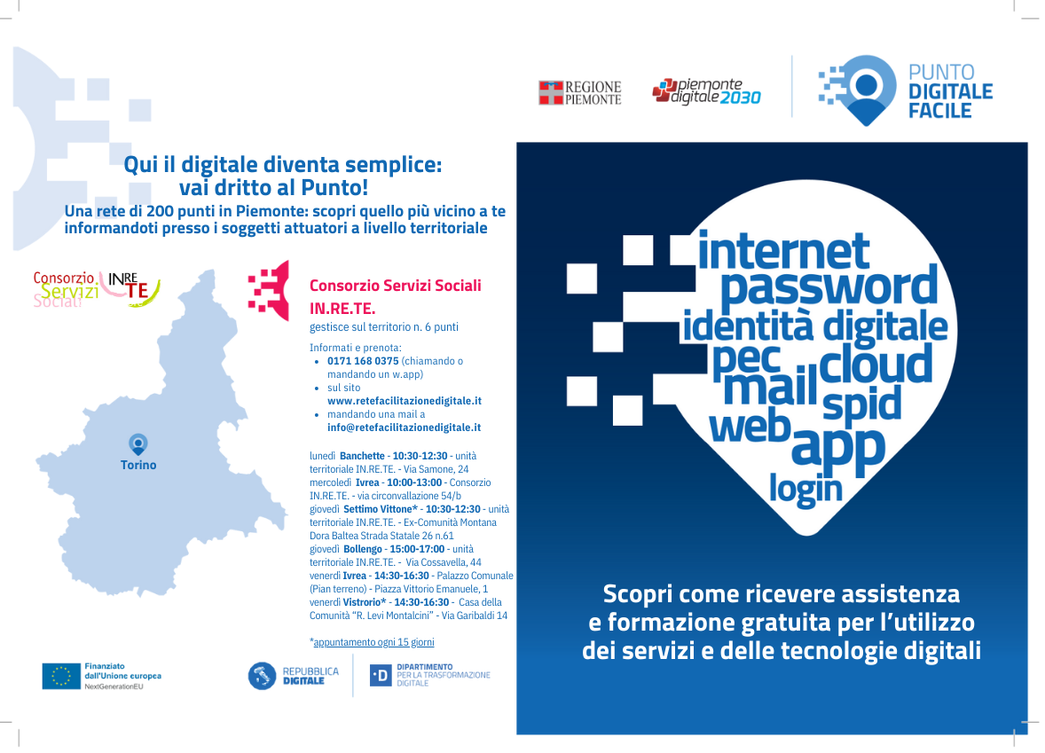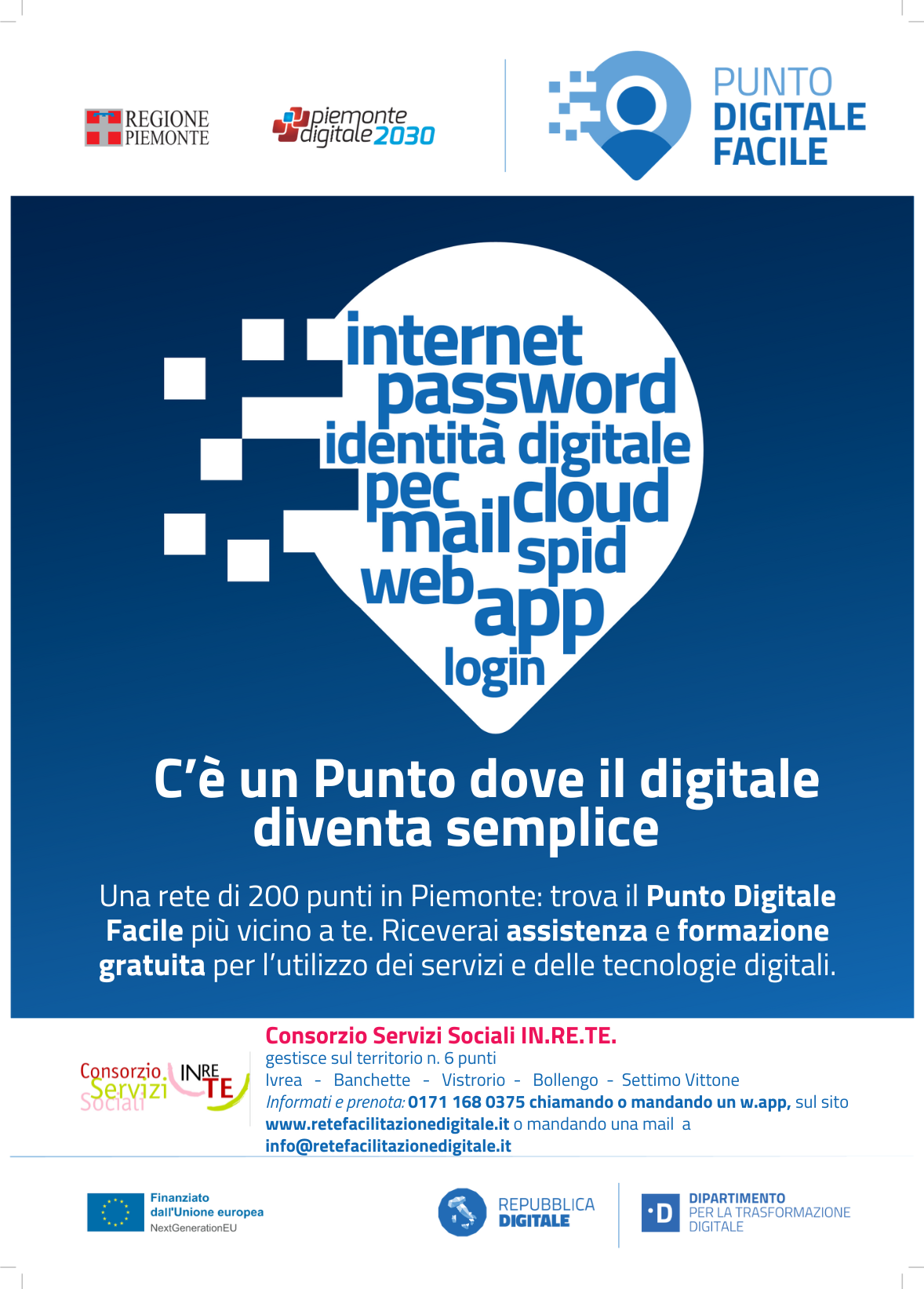 Il servizio di Facilitazione Digitale, con il monitoraggio del Consorzio, in affidamento ad ACLI attraverso l' APS "Uscire Insieme" di Cuneo (realtà che gestite anche su altri territori del Piemonte un analogo servizio), vede la presenza di 2 Facilitatori Digitali certificati ed abilitati che erogheranno il servizio: