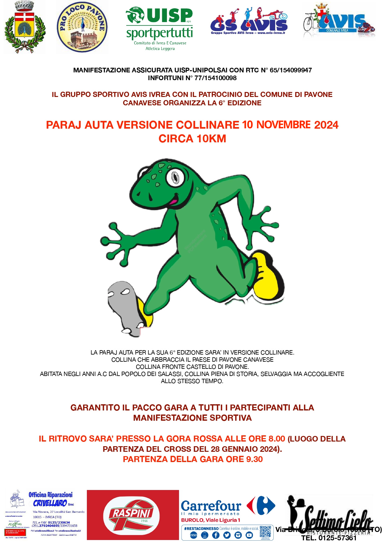 Il Gruppo Sportivo AVIS, in collaborazione con il Comune di Pavone Canavese, organizza il giorno Domenica 10 Novembre, la 5° Edizione del Trail Paraj Auta.