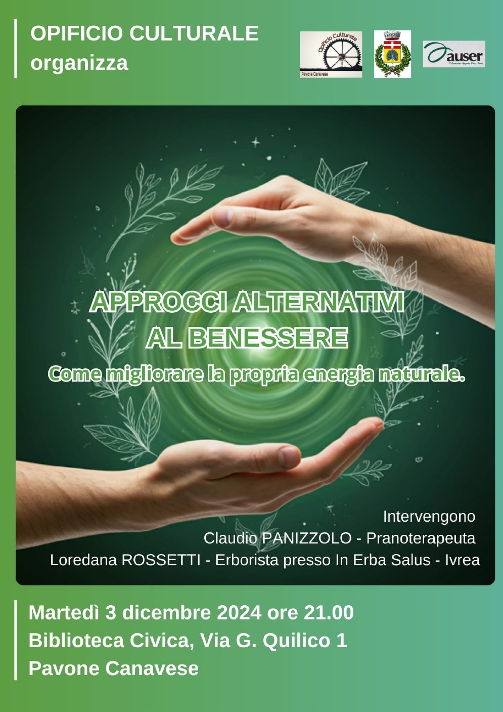 L'Opificio Culturale organizza l'evento "Approcci Alternativi al Benessere", evento incentrato sulla tematica del miglioramento della propria energia naturale.