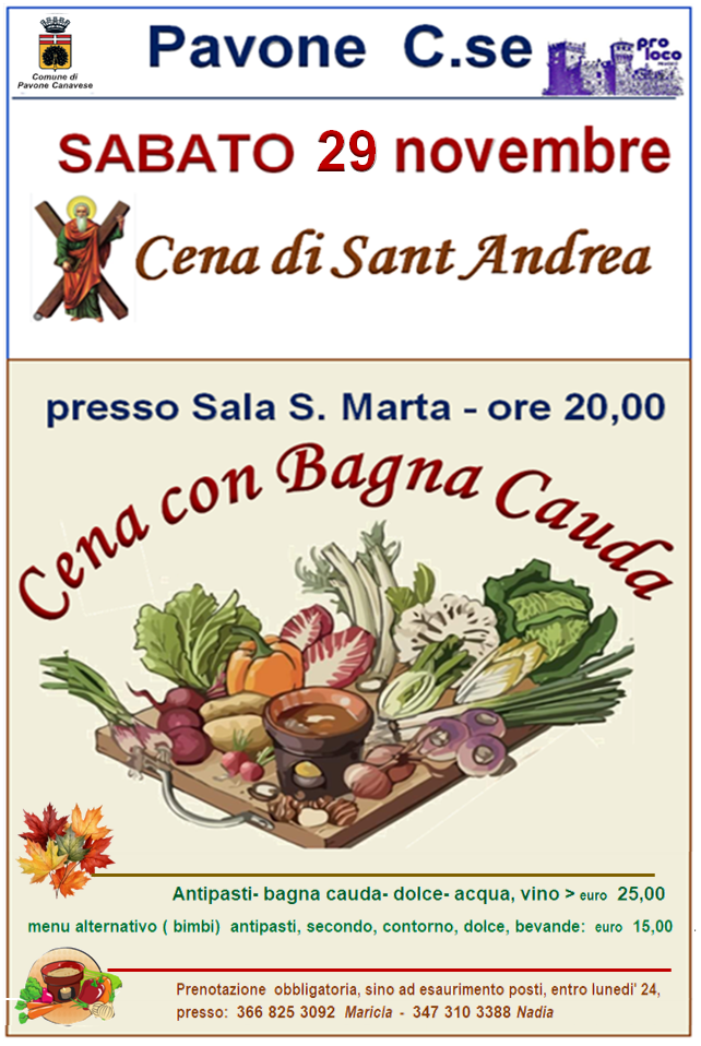 La cena a base di Bagna Cauda si terrà presso l'Oratorio Santa Marta dalle ore 20.00.