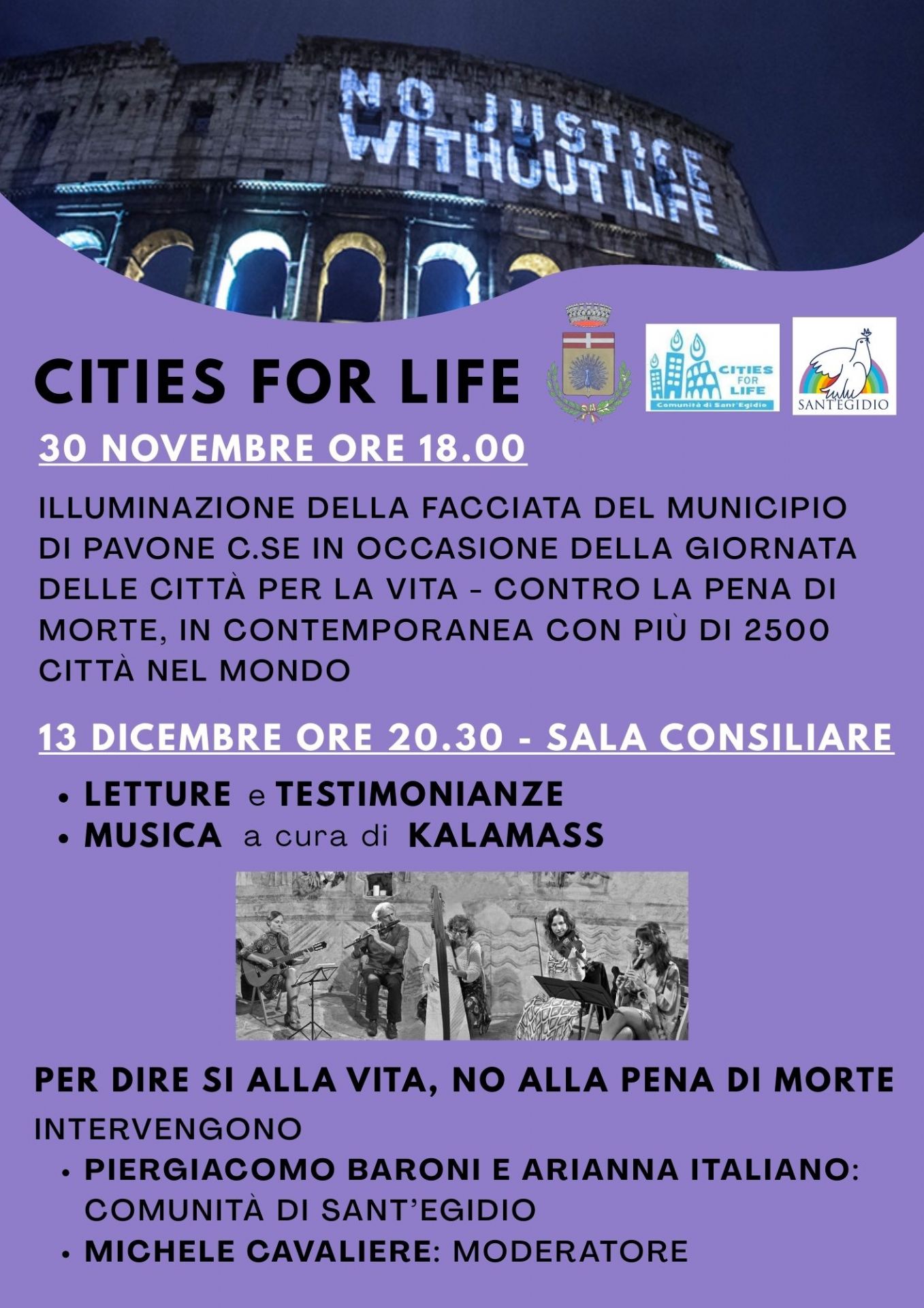 Il 30 novembre di ogni anno si tiene la Giornata Mondiale delle Città per la Vita, Città contro la Pena di Morte per non dimenticare che ancora oggi ci sono paesi del mondo che mantengono questa forma di punizione crudele e disumana. La Giornata delle "Città per la vita" rappresenta la più grande mobilitazione contemporanea planetaria per indicare una forma più alta e civile di giustizia, capace di rinunciare definitivamente alla pena capitale.