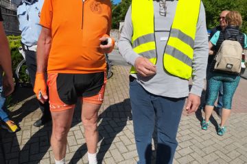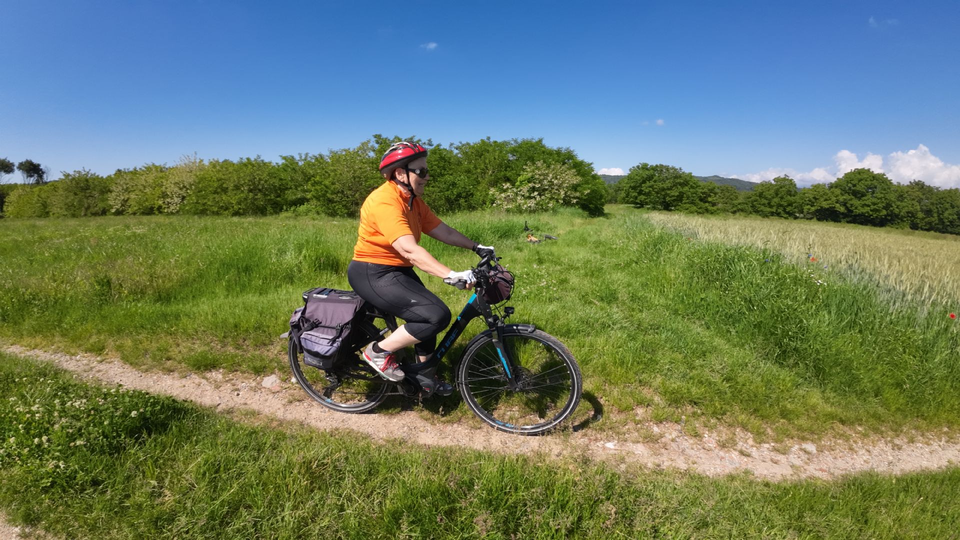 Da Piazza Falcone si imbocca un breve percorso ciclopedonale che consente di sottopassare in sicurezza la rotonda della S.P. 77, si procede quindi lungo la strada asfaltata di Borgata Sanguignolo per abbandonarla, dopo circa 200 m, voltando a sinistra in una strada sterrata che costeggia l’Autostrada A5 Torino-Aosta. Tale strada sterrata sottopassa il Viadotto Marchetti (bretella autostradale) innestandosi sulla ancora sterrata Strada dei laghi, da seguire verso sinistra in direzione del ponte sul T. Chiusella (unico attraversamento ciclopedonale presente nella zona, tra la SP63 e la SS26). Attraversato il ponte, dalla rotonda di Borgata Chiusellaro sulla S.P. 77 si imbocca la pista sterrata che si diparte dall’inizio di strada Cascina Verna e che consente di aggirare integralmente, in senso orario, l’argine realizzato a protezione della suddetta borgata. Sempre su fondo sterrato si svolta a sinistra in Via Regina Margherita, senza interferire con la SP77, quindi due secche svolte, prima a destra e poi a sinistra, consentono di raggiungere in breve l’accesso di servizio dell’autogrill di Scarmagno. Si costeggia l’autostrada per un breve tratto sino ad incontrare un cavalcavia, sempre con fondo sterrato, che consente di passare ad ovest del rilevato autostradale, immettendosi su Strada Trompetto; voltando a sinistra, si segue quest’ultima strada asfaltata per circa 120 m, quindi si incontra un bivio: a destra è possibile raggiungere in breve l’abitato di Perosa Canavese percorrendo Via delle Vigne, congiungendosi in tal modo al percorso che collega Perosa C.se e San Martino C.se; proseguendo dritti su Strada Trompetto si raggiunge in breve la rotonda sulla S.P.56 e da questa il concentrico di Scarmagno, da dove è possibile in breve collegarsi, anche in questo caso, con il suddetto percorso già accatastato, percorrendo in salita Via Romano-Via Peschiera-Via Bessolo per circa 600 m. Il percorso proposto prosegue su asfalto lungo Via Masero (con brevissima divagazione per la visita della Chiesa di Sant’Eusebio); dopo aver attraversato la S.P. 82, si prosegue sulla sterrata Via Montalenghe percorrendo i campi della centuriazione romana in direzione di Mercenasco. Al primo gruppo di case che si incontra si volge a sinistra in direzione della croce di Castelletto e quindi si raggiunge Romano Canavese. Percorrendo Via Risorgimento si transita nel centro storico, presso Piazza Ruggia ove è presente la Chiesa Parrocchiale dei Santi Pietro e Solutore, che rappresenta il punto di arrivo del percorso.