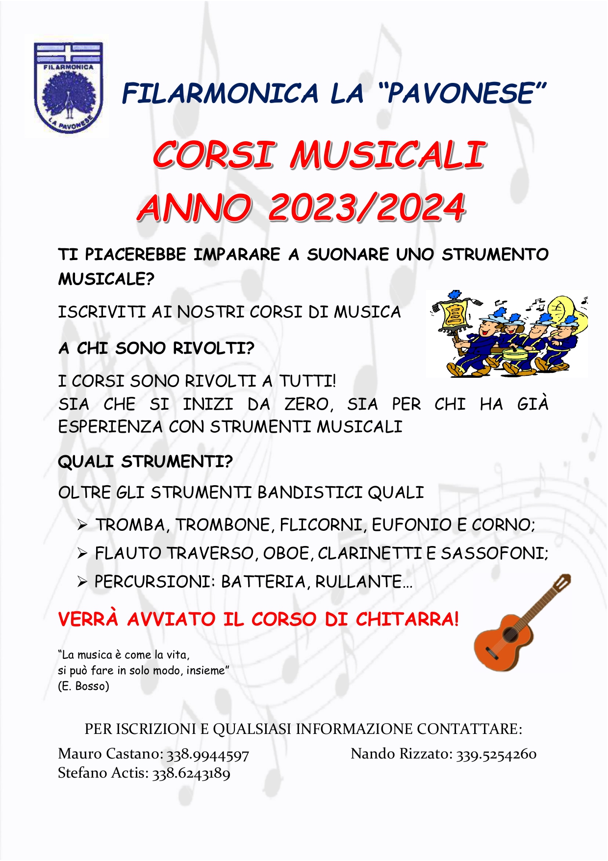 La Filarmonica "La Pavonese" organizza corsi di musica.