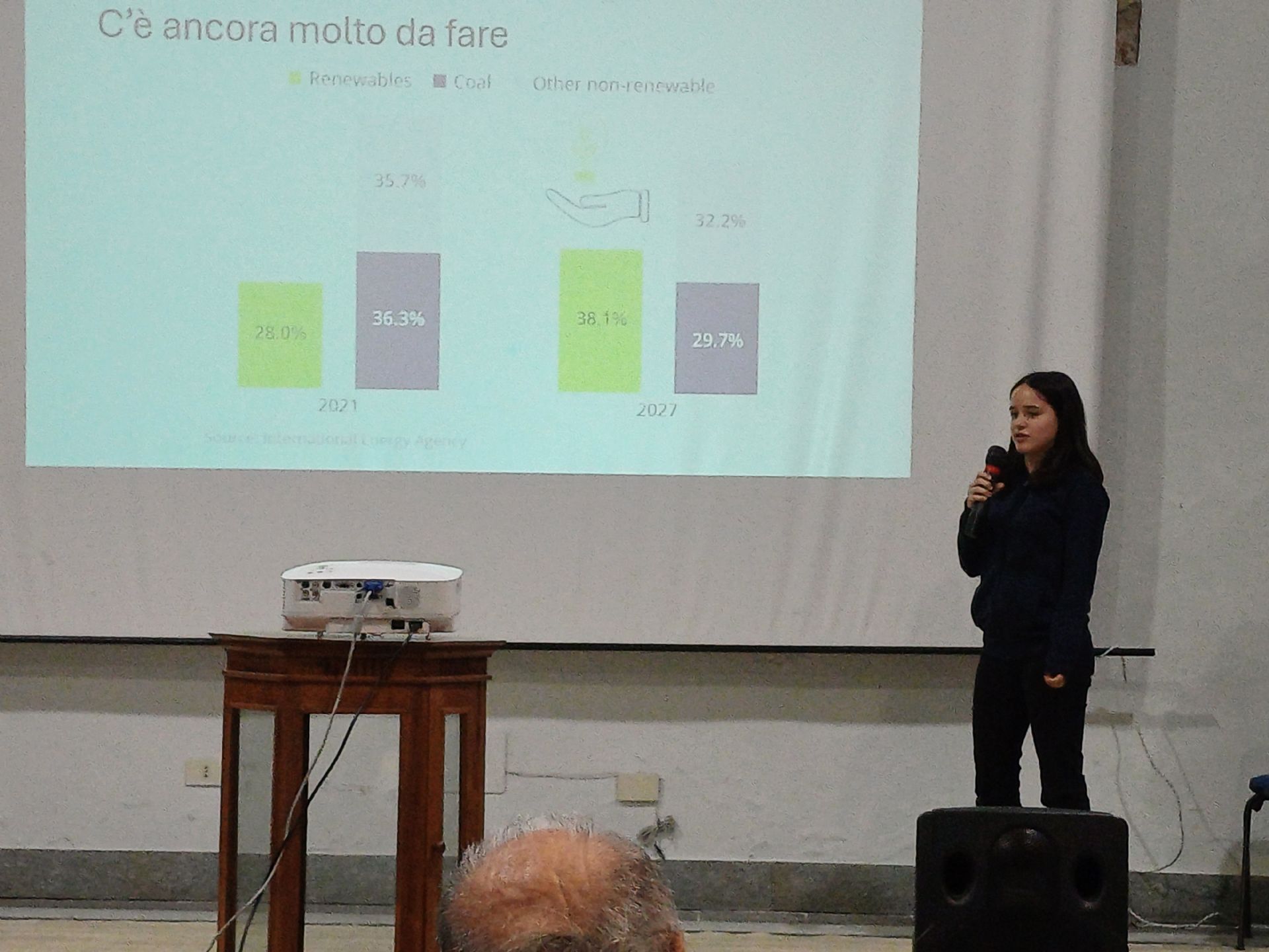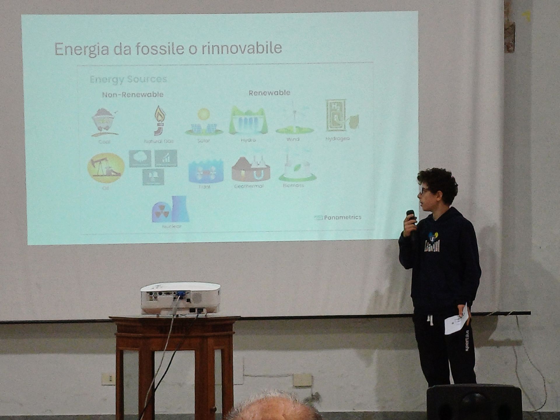 E’ stato poi affrontato da Anita Rosina, Francseco Merlo (entrambi 3° di Pavone) e Simone Prelle (3° di Lessolo) l’importante tema delle energie rinnovabili: fotovoltaico, solare, eolico, idroelettrico e geotermico non hanno effetti climalterante ma ancora sono utilizzate in misura minore di quelle fossili; il ‘sorpasso’ è previsto per il 2027 ma l’Italia è ancora indietro e sotto la media europea nell’utilizzo di rinnovabili.
