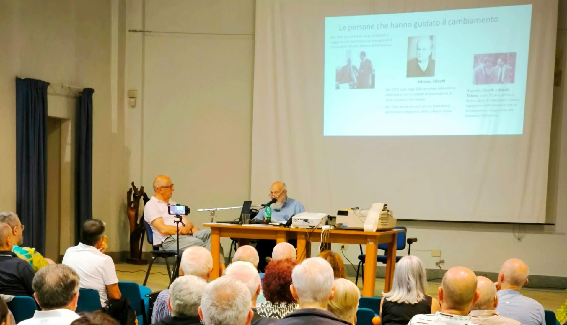 Una sala dell’Oratorio Santa Marta gremita di persone intervenute da tutto il Canavese ha accolto Gastone Garziera che ha raccontato la sua esperienza nel percorso intrapreso dalla Olivetti per entrare nel mondo dell’elettronica.
