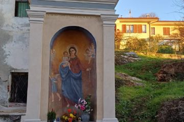 L’edicola in via Trento 10, già restaurata lo scorso anno, ed il pilone di via Trento 16 recentemente restaurato con il contributo del dottor Paolo Ambrois, direttore della farmacia eporediese Yporegia, per onorare la memoria della zia Adelina.