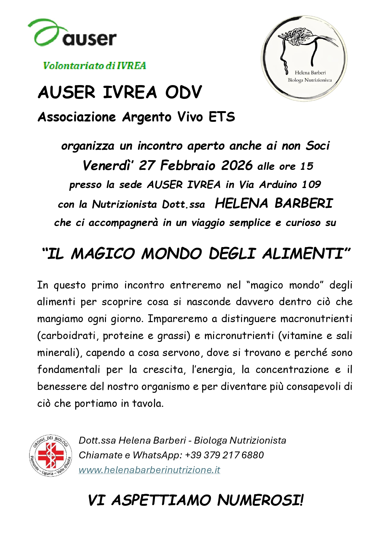 L'Associazione Auser Ivrea ODV Argento Vivo organizza venerdì 27 Febbraio 2026 alle ore 15,00