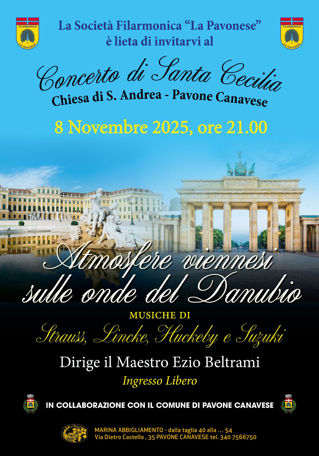 La Filarmonica "La Pavonese", in collaborazione con il Comune di Pavone Canavese, organizza sabato 8 novembre alle ore 21.00 presso la Chiesa di S. Andrea il