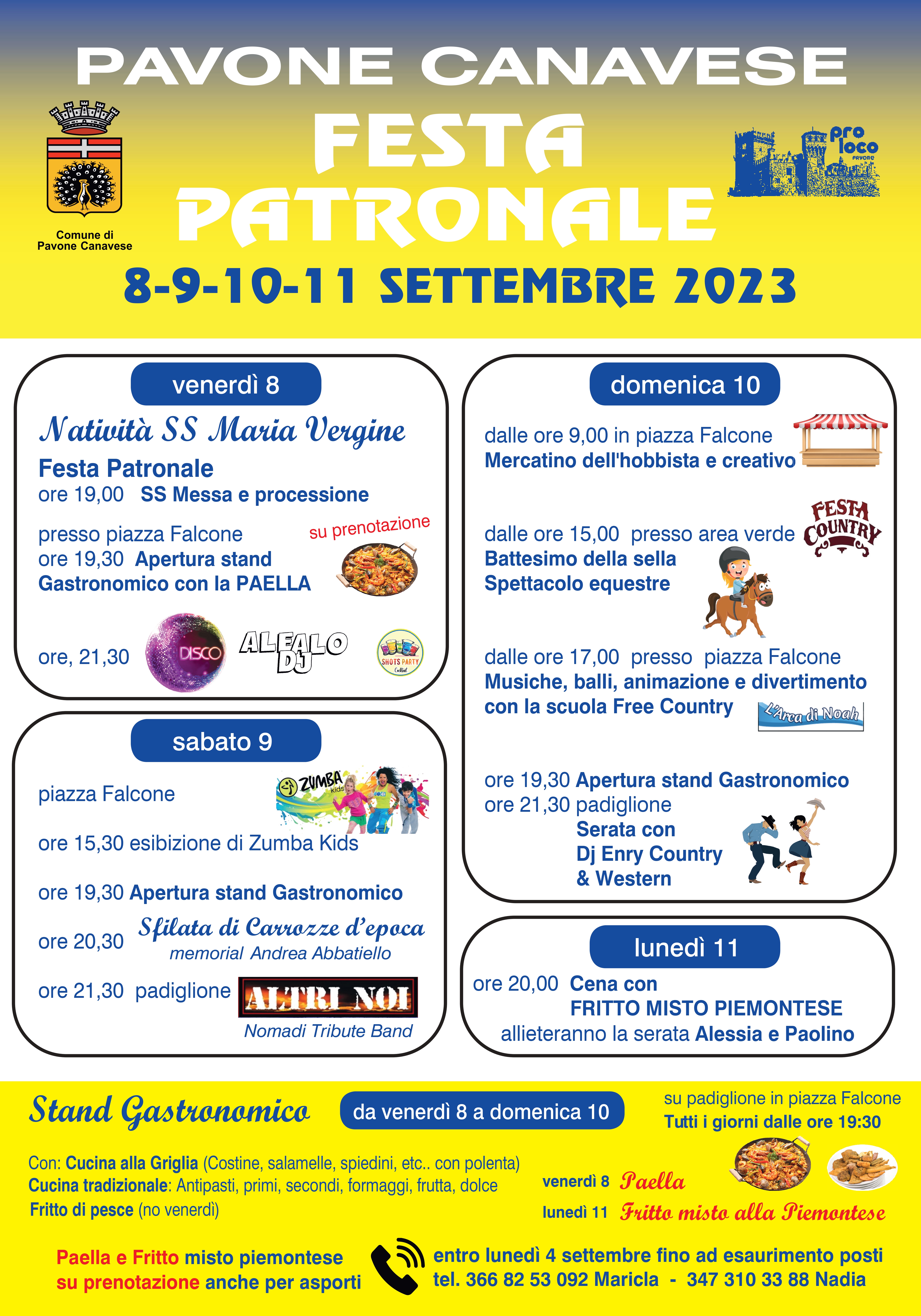 La Pro Loco organizza da giovedì 7 settembre a domenica 10 settembre la "Festa Patronale 2023"