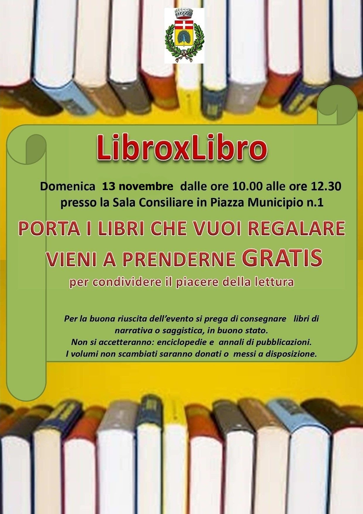 "PORTA I LIBRI CHE VUOI REGALARE E VIENI A PRENDERNE GRATIS"