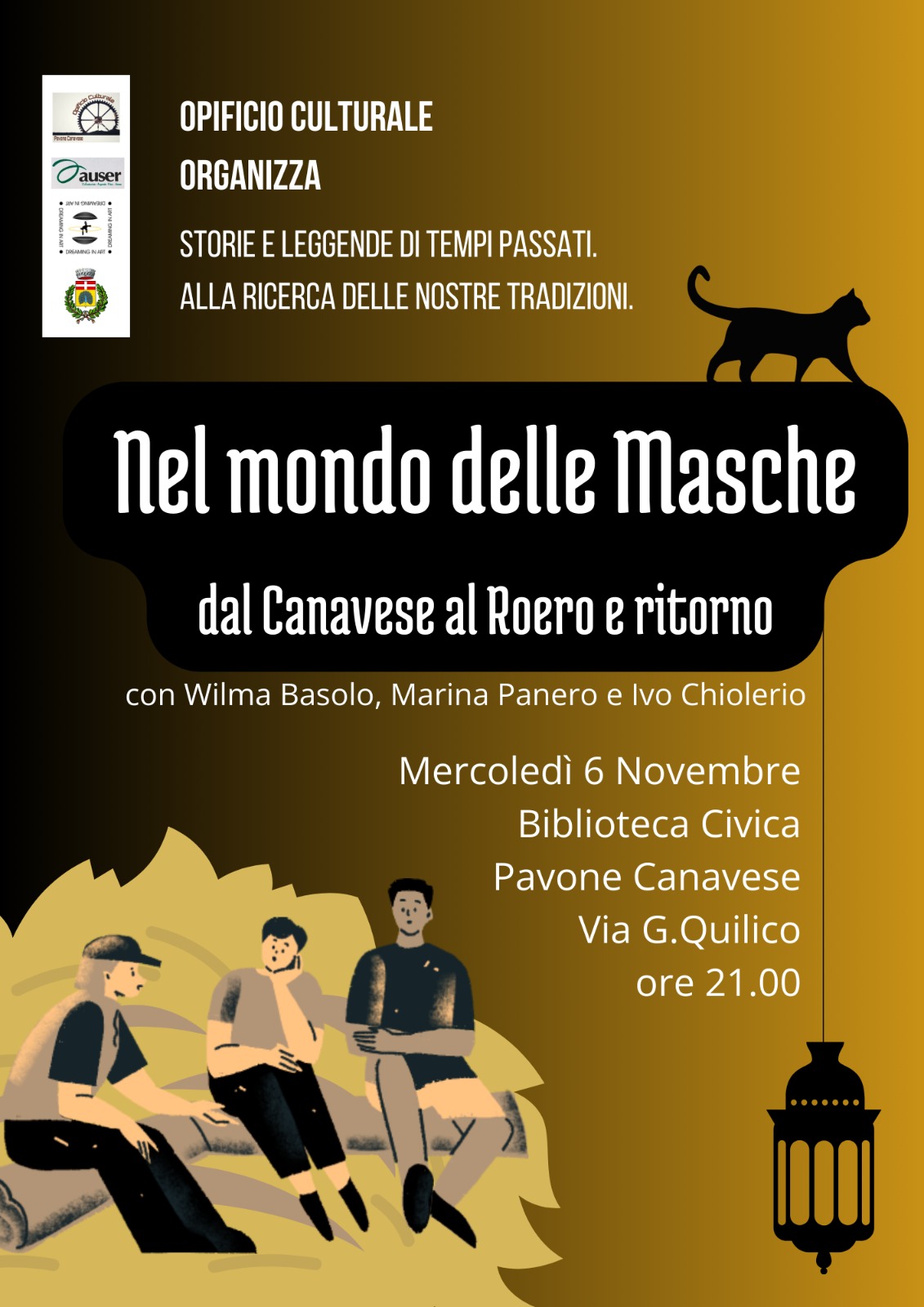 L'Opificio Culturale, in collaborazione con il Comune di Pavone Canavese, organizza l'evento "Nel Mondo delle Masche - dal Canavese al Roero e ritorno", evento che tratterà di storie e leggende di tempi passati, alla ricerca delle tradizioni canavesane.