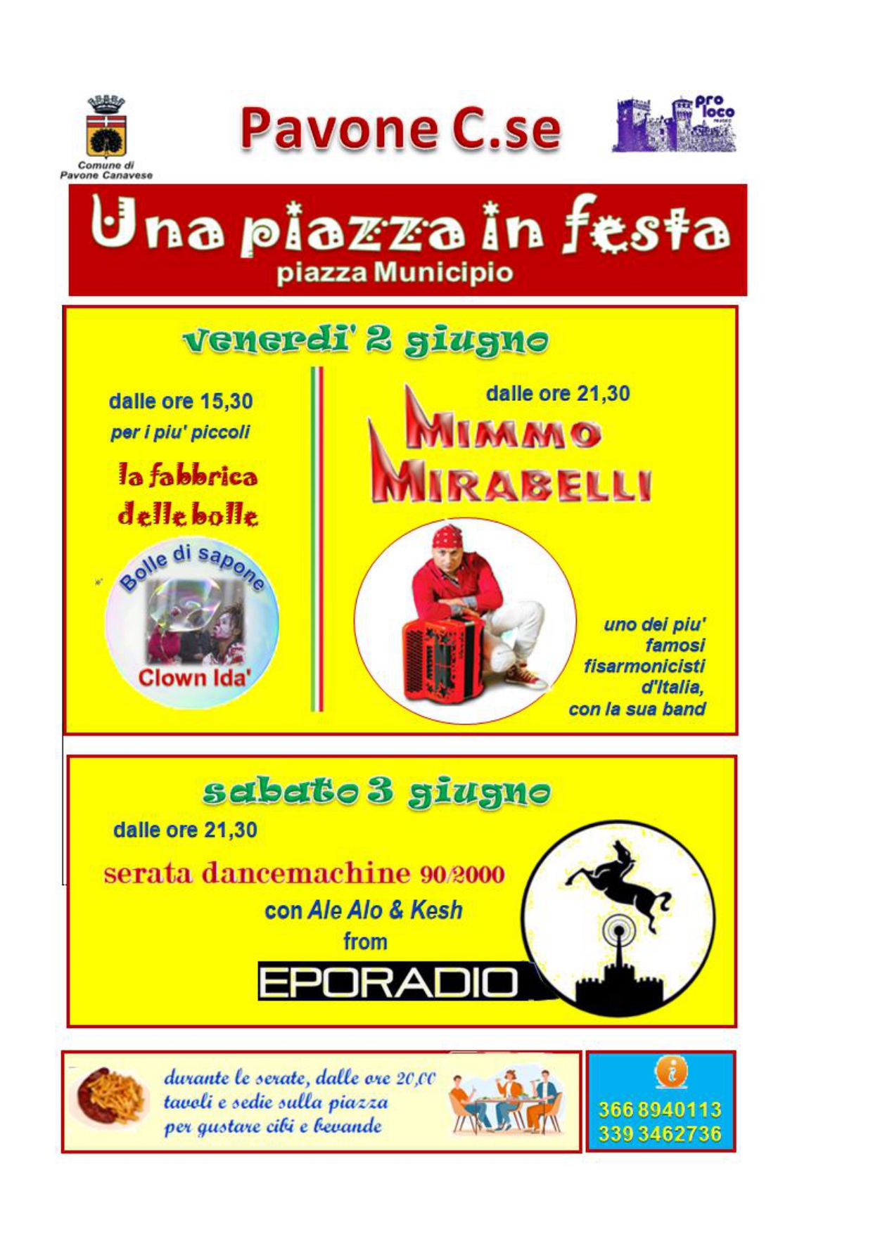 La Pro Loco Pavone in collaborazione con il Comune di Pavone Canavese organizza: